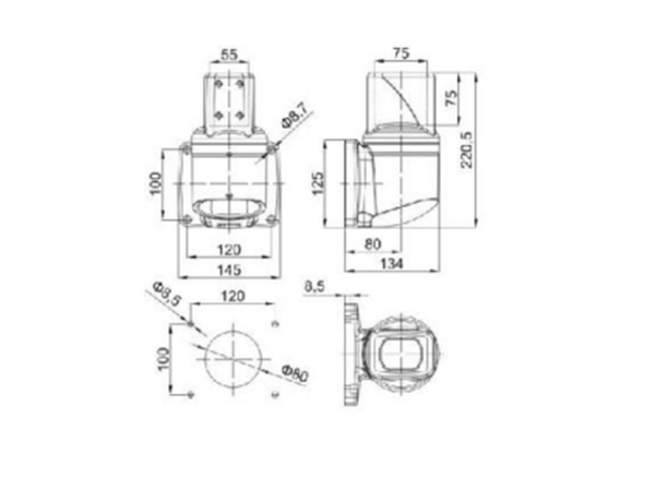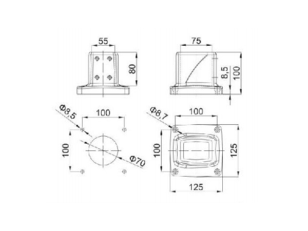 该系列中型悬臂组件配合55X75mm铝管用于悬挂或支撑控制箱体铝管采用阳极氧化表面处理,组件全部采用铝合金铸工艺制造,在保证强度及合理的结构下,更注重了外观的特有风格。